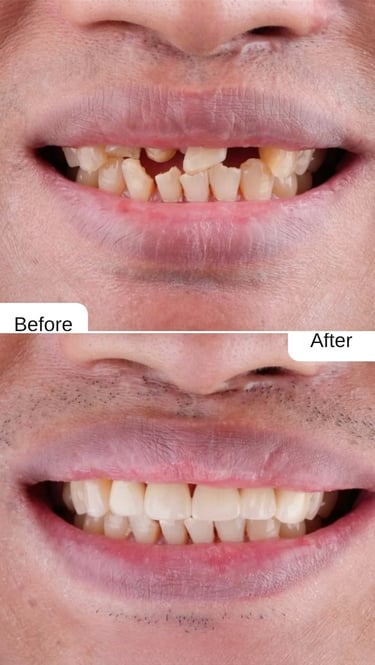 Dentures are custom-made removable appliances used to replace missing teeth. They restore chewing function, improve speech, and enhance facial appearance for a natural, confident smile.